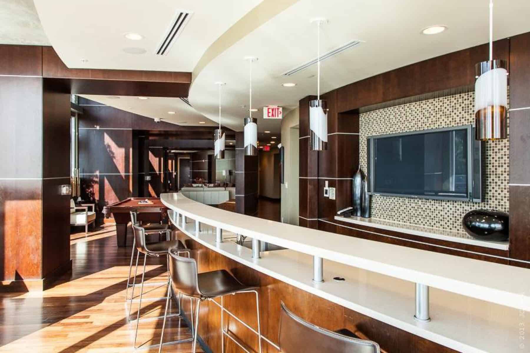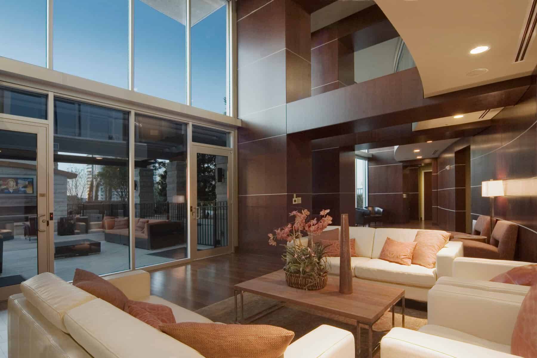 A prominent addition to the downtown Austin skyline, 360 Condominiums is located on the shore of Shoal Creek between the Market and 2nd Street Districts. The building is 44 stories tall and was developed by Novare Development. Units feature floor-to-ceiling windows, 10’ ceilings, and breathtaking views. The building has a 24-hour full service concierge, high-velocity elevators, 3/4 acre amenities deck overlooking West Austin, and a 70’ lap pool.