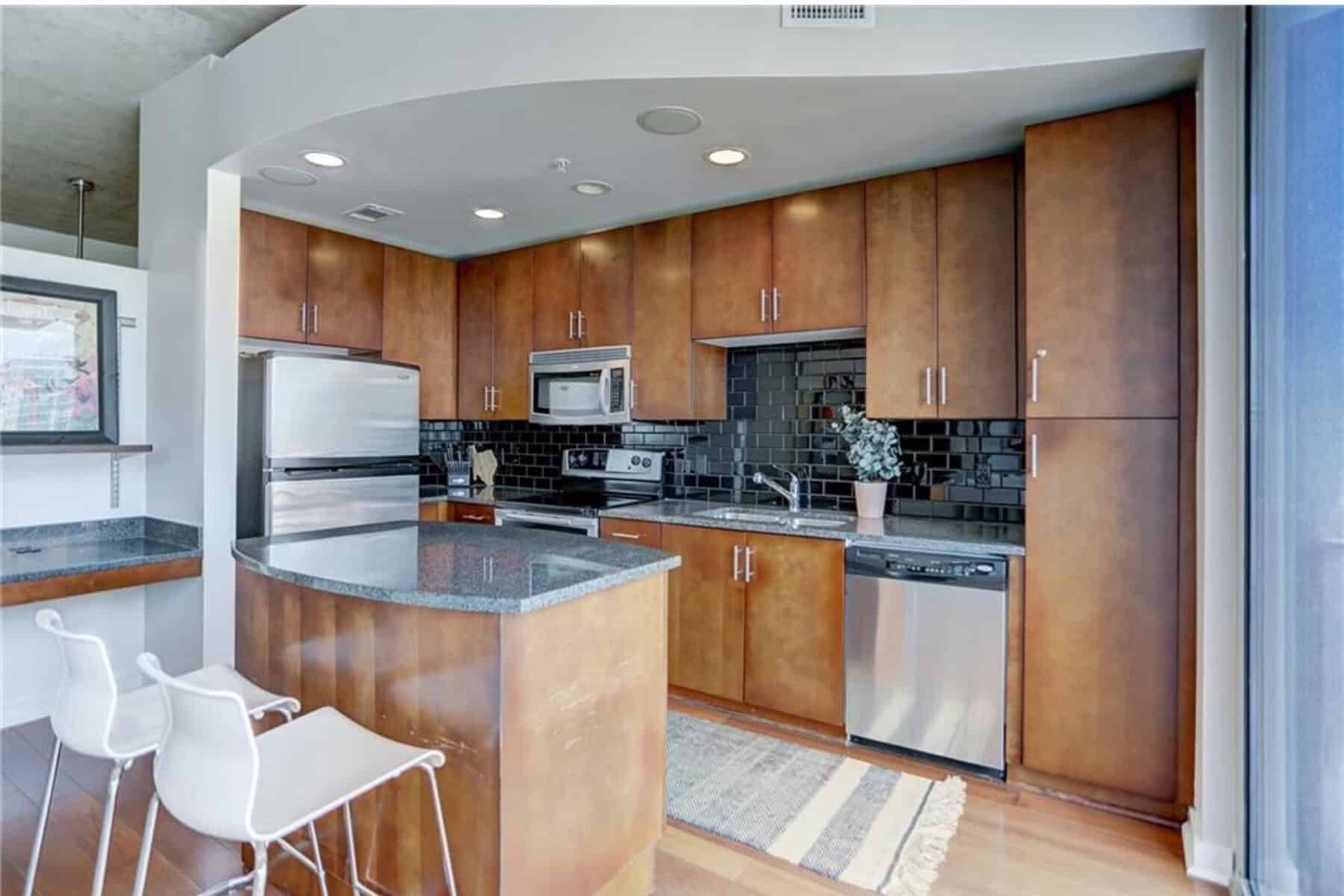 The 360 Condominiums feature open spacious floor plans, Whirlpool stainless steel appliances, granite kitchen counter tops, a balcony or terrace in every home, and floor-to-ceiling windows. Units start on the 9th floor of the building with 7 levels of parking below to ensure fantastic views.
